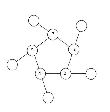 Depending on the relative positioning of the numbers in the inner ring, one can narrow the range of x-values one might have to check for each permutation. To zero-down on such a range, let’s look at an example. Shown in the figure below is a randomly chosen permutation of number in the inner ring – 7, 2, 3, 4 and 5, in that order.